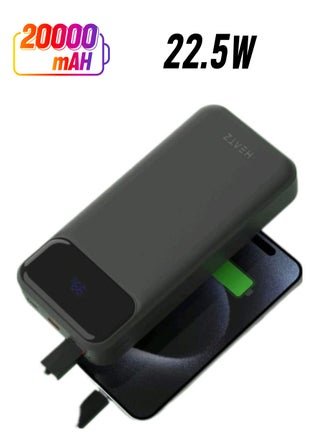 The Heatz HP4 powerbank combines versatility and style in a compact 6-in-1 design with a 10000 mah capacity. It delivers a fast 22.5W output and can charge up to three devices simultaneously featuring a built-in nylon cable for added durability and a sleek black finish with an integrate metal holder. Its both modern and pratical for your charging needs. The built-in nylon cable and sleek black design with a metal holder makes it as stylish as it is functiona lightning type and type c cable support.